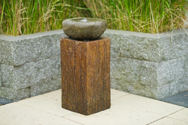 Egyszerre jelenik meg a modern és a klasszikus stílus ebben a csobogóban. A fa- és a kőhatás gyönyörű összhangban áll egymással. LED világítással szerelt, gyorsan felállítható csobogó.