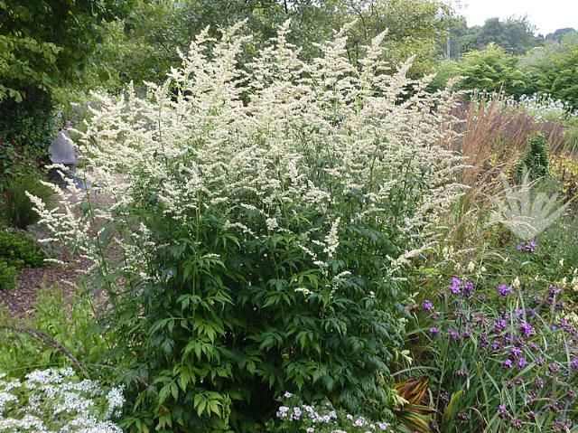 Virág: apró, elefántcsontszínű, laza, felfelé törő virágfürtökben, nyár végétől őszig nyílik