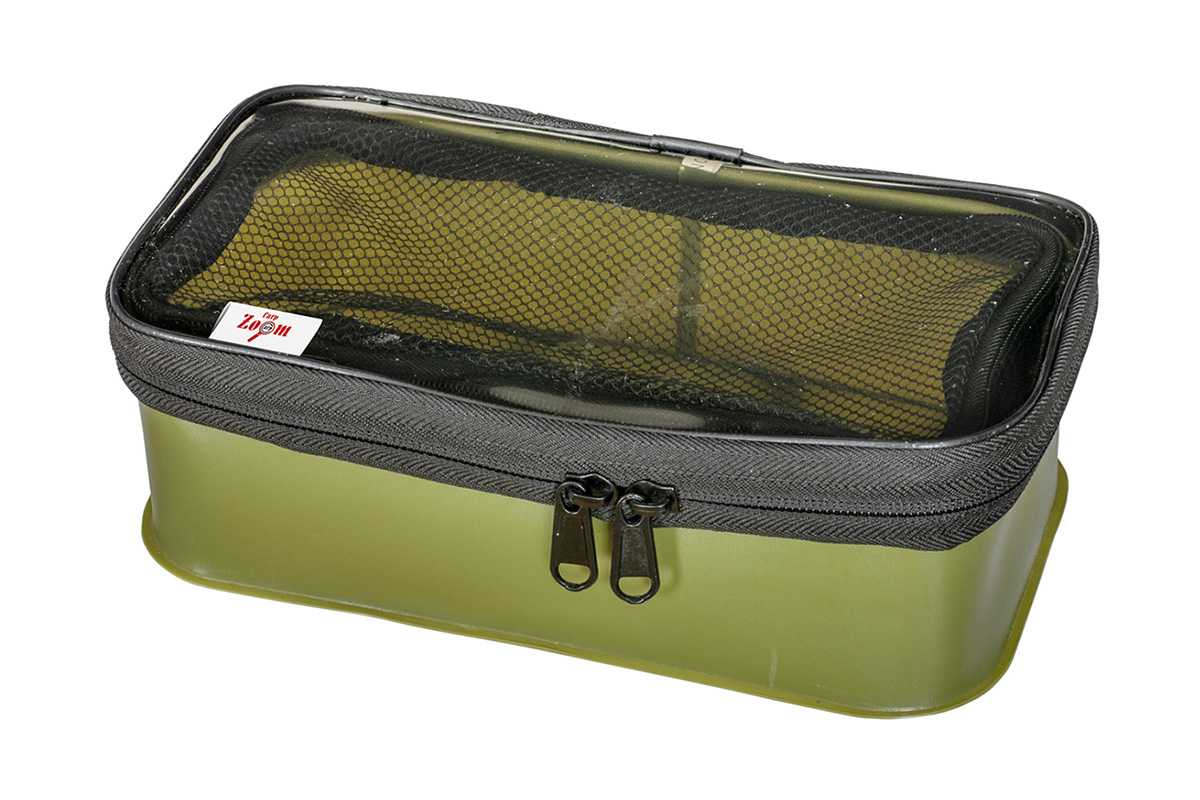 Könnyű vízhatlan EVA anyagból készült táska, melyre erős cipzár és átlátszó fedél került. A jól pakolható egybefüggő belső tér és a doboz teteje között szintén cipzárral rögzíthető háló található, mely megakadályozza a benne tárolt felszerelés kihullását. Vízálló tulajdonságának köszönhetően tökéletes megoldás a fontosabb kiegészítők tárolására esős időben, de a csónakos horgászatok alkalmával is hasznos kiegészítőnek bizonyult.