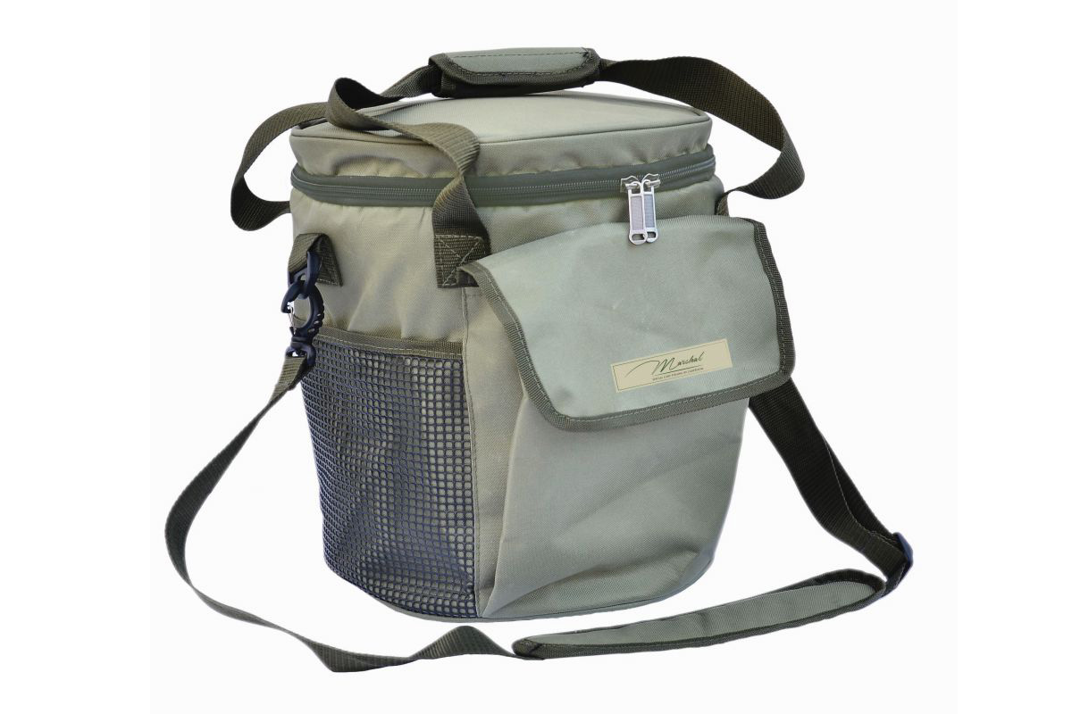 A Marshal kínálatából nem hiányozhat egy kiváló minőségű csalitartó táska. 25 literes térfogatának köszönhetően nagy mennyiségű etetésre és horogra szánt csali elfér benne. Belső szigetelő bélése a nyári hőségben megvédi csalinkat a túlzott felmelegedéstől. A központi részén kívül kettő gumírozott hálós tároló rekesz és egy tépőzáras nagyméretű zsebet találunk az oldalán. A táska alja gumírozott, könnyen takarítható. Vállpántja széles, bélelt, hossza igény szerint állítható vagy akár le is vehető. Ezen kívül még egy tépőzáras fogantyú segíti a pakolást.