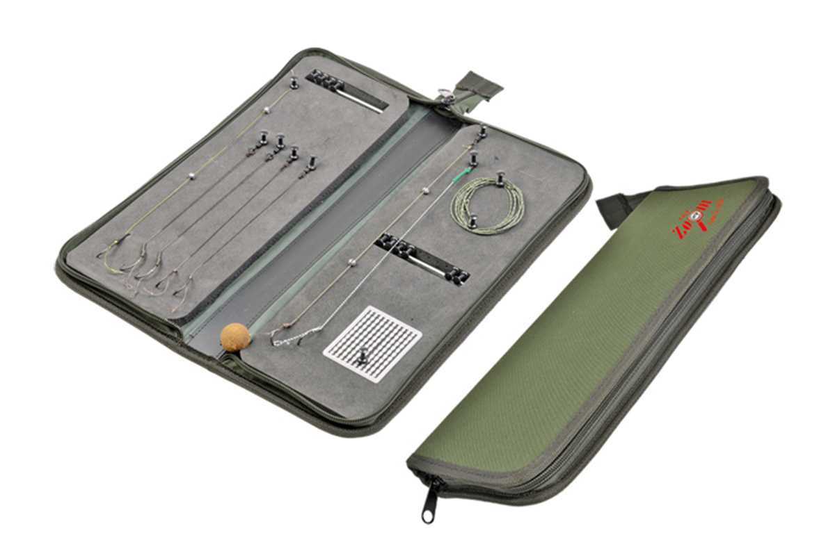 Bojlis és hagyományos horogelőkék tárolására alkalmas táska. Hosszú életű szivacsbetéttel és cipzárral készül. A rögzítő tüskéket tartalmazza.