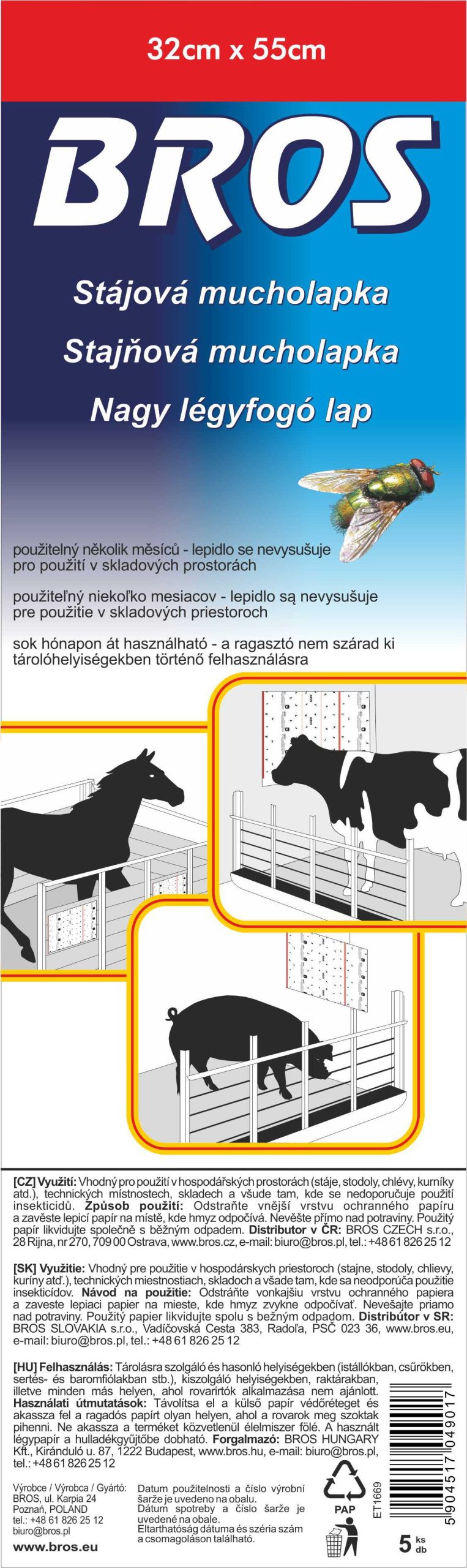 Bros Nagy légyfogó lap 32x 60cm
