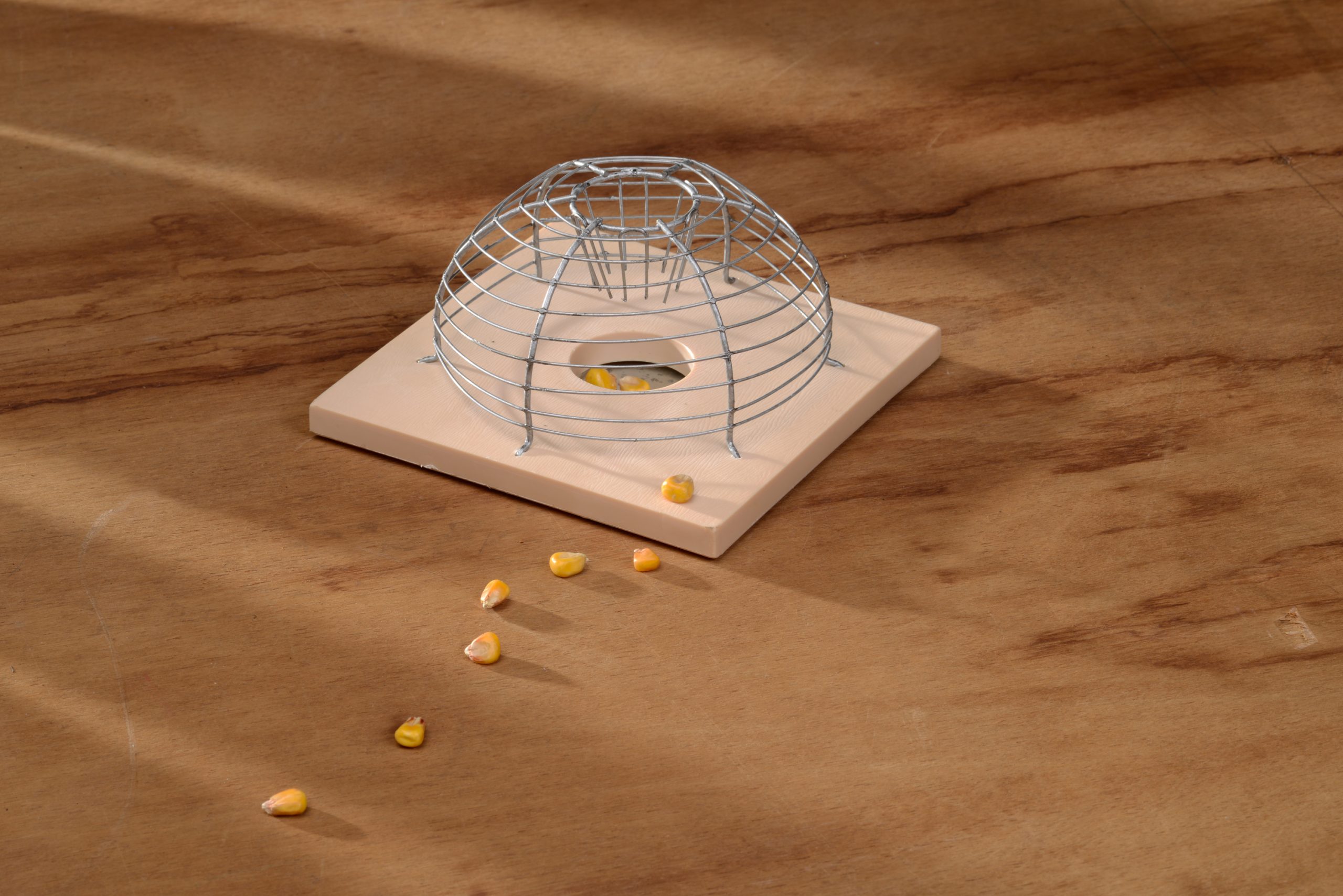 Egércsapda drótkalitkával, műanyag alap + kör alakú fém kalitka. H7x15 cm. Megfogja a kártevőket, anélkül, hogy megölné őket.