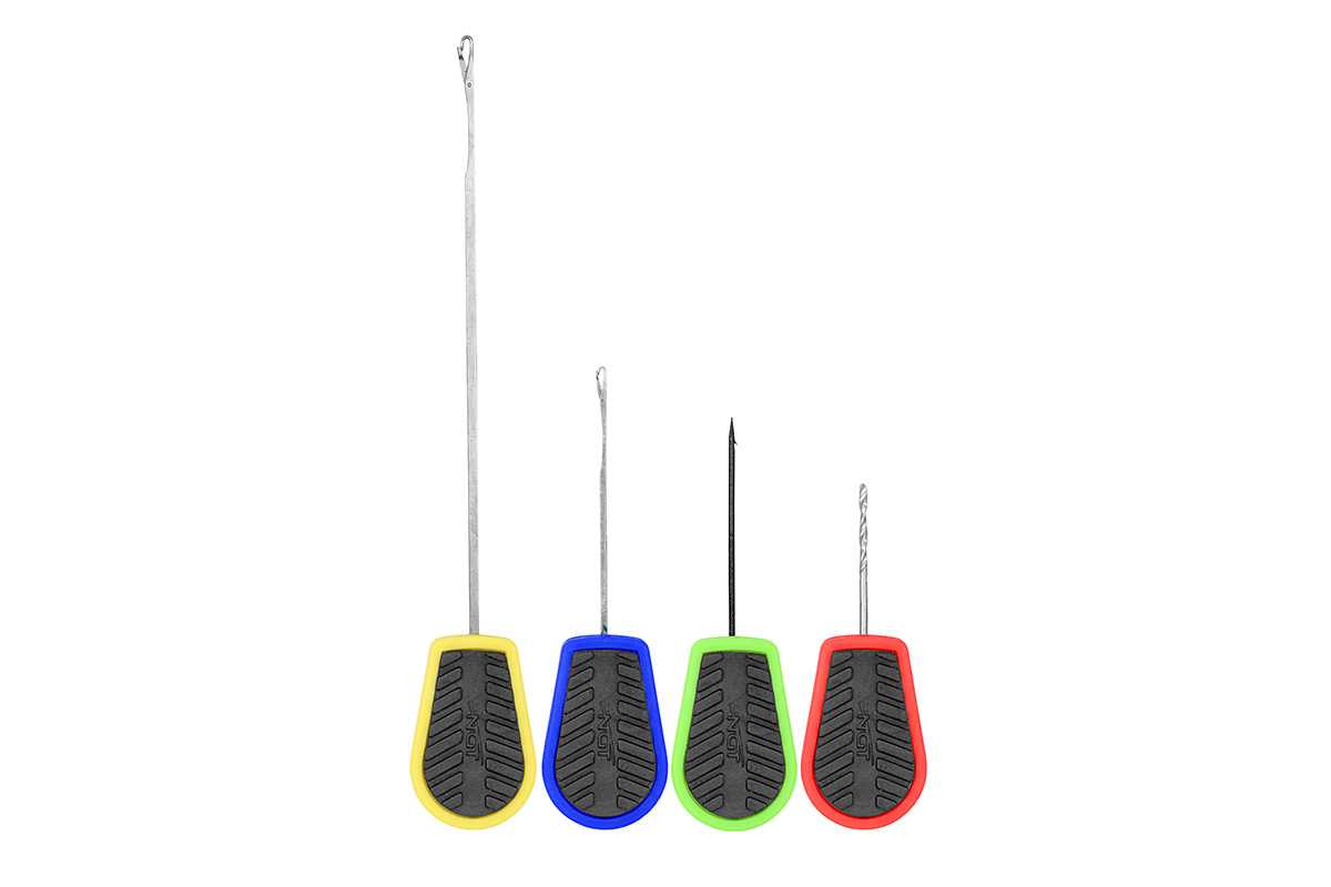 Négy részes csalizó készlet, mely egy bojlifúrót és három darab fűzőtűt tartalmaz. Míg a biztonsági füllel ellátott változatok tökéletesek a már előfúrt bojlik és pelletek hajszálelőkére való felfűzéséhez – anélkül, hogy a beakasztott előkefül kicsúszna a tű hurkából – addig a szakállal ellátott, hegyes típussal a fúratlan, puhább csalik (bojlik, pelletek, szemes termények) rögzíthetők a horog alá. A hosszú változat segítségével nagyobb PVA csomagot is felfűzhetünk az előkére. A bojlis, feeder és klasszikus fenekező horgászok nélkülözhetetlen kiegészítője.