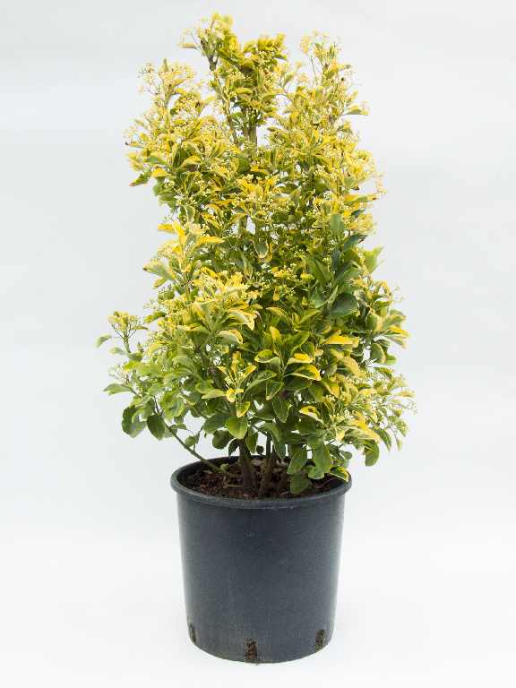 Az Euonymus japonicus ‘Ovatus Aureus’ egy feltűnő, örökzöld díszcserje, mely ovális, sötétzöld leveleit élénk sárga szegély díszíti. Kompakt, bokros növekedésű, így kiváló választás sövénynek, szegélynövénynek vagy konténeres neveléshez. Egész évben dekoratív megjelenést biztosít, különösen napos helyeken, ahol a sárga szegély még hangsúlyosabbá válik.