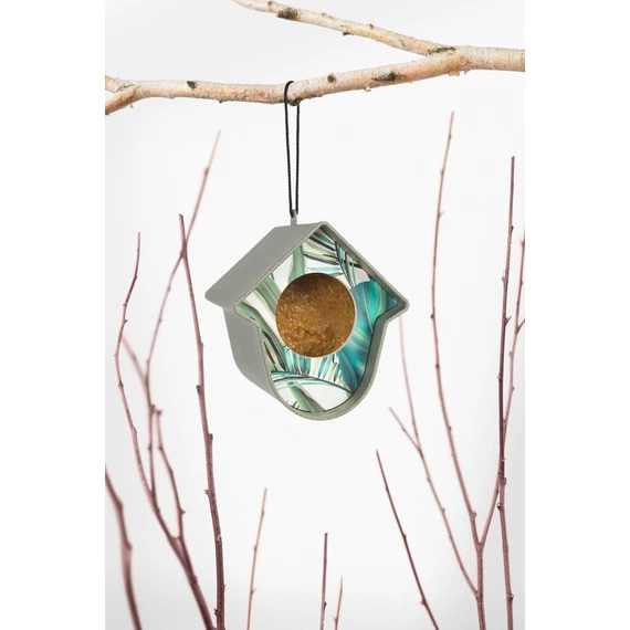 EVIE 100%-ban újrahasznosított madáretető szürke, levélmintás előlappal 15×13,5×17