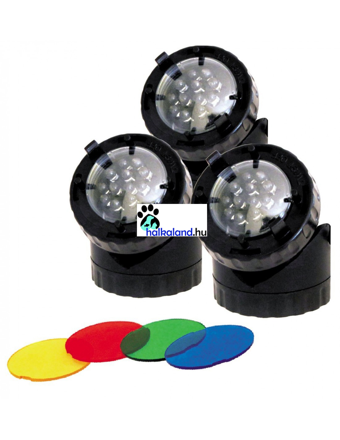 Happet kerti tó LED világítás szett cserélhető színes lencsékkel. Energiatakarékos megoldás a kerti tó vagy kert látványos megvilágításához. Vízalatti és vízen kívüli használatra is alkalmas, LED izzós kerti lámpa szett. Ideális kerti tavak, csobogók, kerti dekorációk megvilágításához. Alkonyatkapcsolója által csak akkor világít teljes erővel, amikor szükséges.