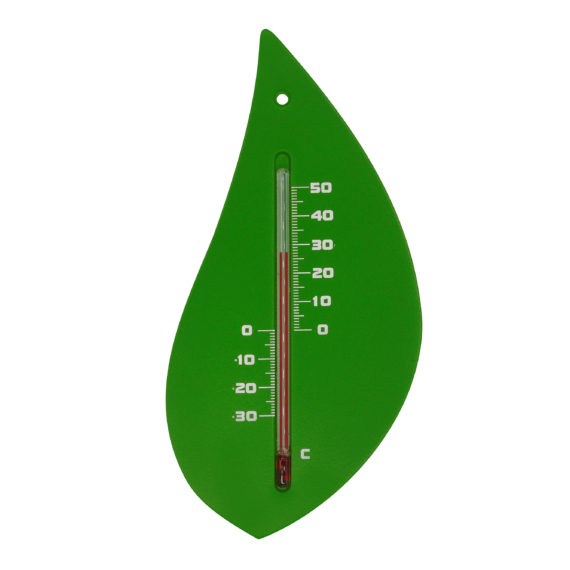 Hőmérő kültéri, műanyag, zöld falevél forma15x8x0,3cm