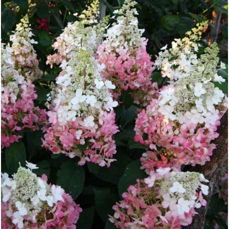 Mutatós, kúp alakú virágbugái az orgonáéhoz hasonlítanak. Többnyire steril, meddő virágokból állnak, amik között ott bújnak a termős kicsi virágok is. Van egyébként magja, nálam kikelnek a cserepekben, amit elszór. A virágok kezdetben fehérek, majd ahogy telik az idő, zölddé vagy rózsaszínné változik, fajtától függően. Később kezd el virágozni, mint a kerti hortenzia, nyár közepétől. Sokáig virágzik ez a fajta is, még ősszel is díszít, szép őszi színei vannak. Jól lehet szárítani a bugákat.