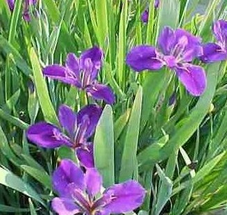 Kékes, lilás keskenyebb szirmú írisz fajta.
