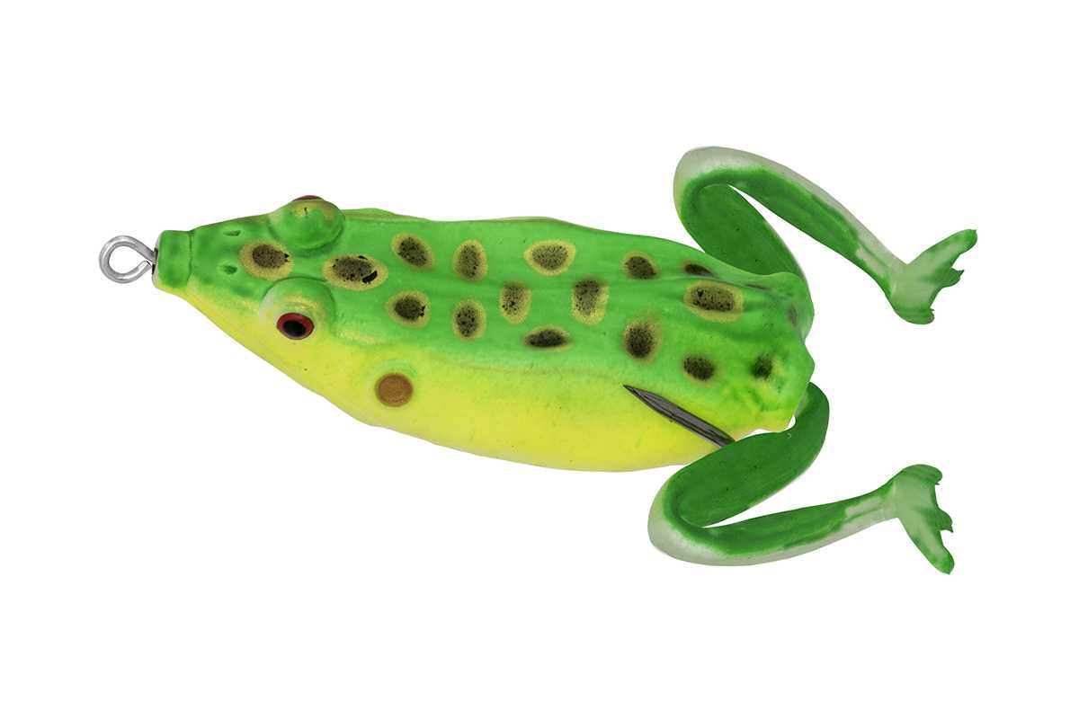 Ez a békautánzat elsősorban a csuka és a fekete sügér horgászatára ajánljuk, de kisebb harcsákra is alkalmazható csali. Ezt a csalit a part szélén, nádasok és növényzettel benőtt területen alkalmazhatjuk eredményesen. A békánkat már lassú bevontatásnál is kellően kívánatossá tudjuk tenni, a hátsó lábainak kialakítása miatt. A béka hátsó részén a lábak formája miatt hullámokat gerjeszt, úszás közben is, pontosan olyanokat mint a béka úszás közben. Fontos, hogy milyen sebességgel és milyen időszakos megállítással tudjuk felkelteni a ragadozó halak érdeklődését.Kisebb rántásokkal tovább fokozhatjuk a csalink által keltett hullámokat és a fröccsenő víz hanghatását. TIPP: kapást követően sose rántsuk ki azonnal, mert a rejtett horgok nem egyből fog ülni a csuka szájában. Türelemmel várjuk ki a megfelelő pillanatot. Bátran vessük be a hínáras , békanyállal és töklevéllel borított pályákon is!
