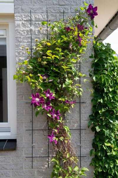 Dekoratív, téglalap alakú, fém futtatórács műanyaggal bevont acélból. Falhoz állított használatra. Mellékelt rögzítőkészlettel.