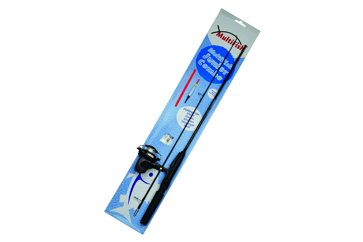 Kétrészes és teleszkópos horgászbot szett, zsinórral feltöltött orsóval, kiegészítőkkel.