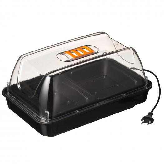 Fűtéssel, stabil hőmérsékletet biztosító szaporító gép, átlátszó burkolattal, csúszó levegőztetőkkel. Kapilláris szőnyeggel és 2 különálló magtálcával szállítjuk.