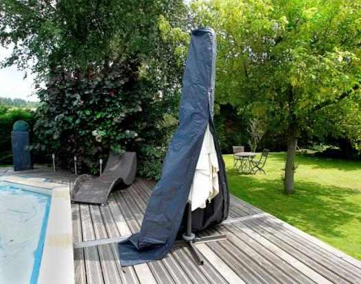 100 g / m² sűrűségű, ellenálló, UV-ellen kezelt polietilénből készült, zöld színű. Alul fűzőlyukakkal és nylon zárózsinórral vagy cipzárral. Időjárás és a por elleni védelem.