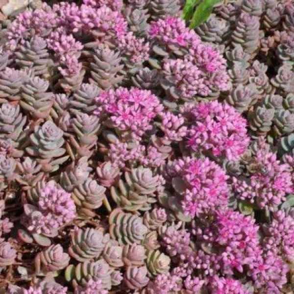 Ritka, kékes-zöld lombú, rózsaszín virágú pozsgás évelő