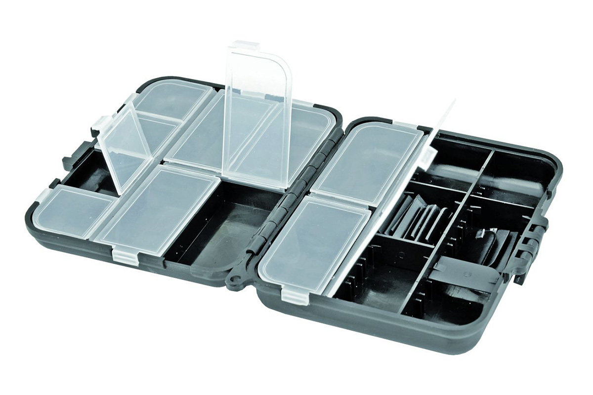 A legfontosabb aprócikkeinknek ideális doboz igényes kivitelezésben. 12,2 x 10,5 cm-es tároló doboz, 3,4 cm-es magassággal. Variálható belső, így minden horgot, forgót, kapcsot,ütközőt, stoppert megfelelő méretű rekeszekbe tudjuk rendszerezni. Méretei miatt zsebünkben is kényelmesen elfér. Minőségi kemény műanyagból készült, így időtálló darab. Szétnyitható, mindkét oldalon zárható rekeszek.