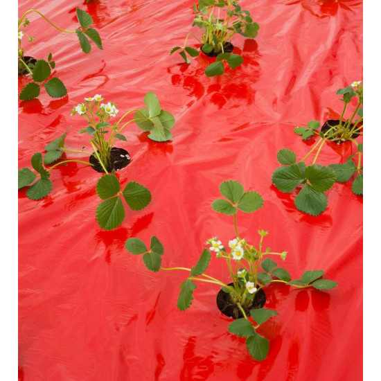 Piros színű talajtakaró fólia kimondottan eperhez. Az 10 méter hosszú fólián 80 db ültető lyuk található, melyek mindegyike 6 cm-es átmérővel rendelkezik, az ültetés megkönnyítése és a növekedés elősegítése érdekében. Mikroperforációkkal ellátott, ami lehetővé teszi, hogy a víz bárhol áthatolhasson a fólia felszínén, így az eper mellékgyökerei is vízhez jutnak. A fólia piros színe visszaveri a fényspektrum piros hullámait, amelyek fokozzák a termés puhaságát és édességét, valamint 12–20%-kal növelik a terméshozamot. A fólia használata minden eperféle termesztéséhez ajánlott, beleértve a négy évszakos, a kúszó és a nem kúszó fajtákat is. Polietilén fólia (LDPE + LLDPE), 25 μ vastag, UV-védelmet biztosító felületkezeléssel.