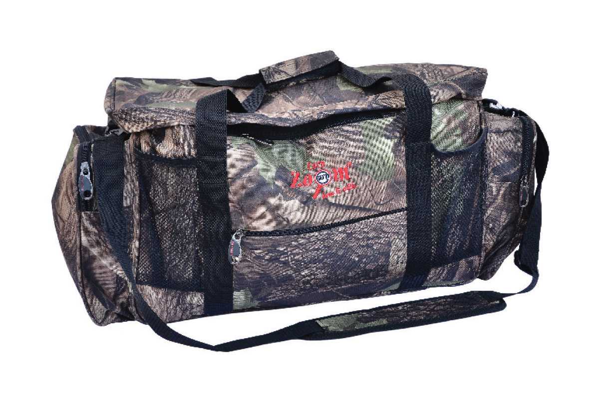 Ez a nagyméretű Camou táska rengeteg tárolási lehetőséget biztosít. Camou mintázatú anyaga megfelelően bélelt, emellett kellőképpen ellenáll az esőnek. Külső részén 4 db zipzáros oldalzseb illetve 2 db hálós zseb helyezkedik el. Központi részét 1-től 6 fakkig variálhatjuk az 5db párnázott, tépőzáras fakkelválasztóval. A lezipzározható felső részén helyet kapott még 3db különböző méretű zipzáros illetve tépőzáras zseb. Széles vállpántja párnázott, állítható hosszúságú, igény szerint gyorskarabínerrel levehető. Tépőzáras fogantyúja jó fogást biztosít.