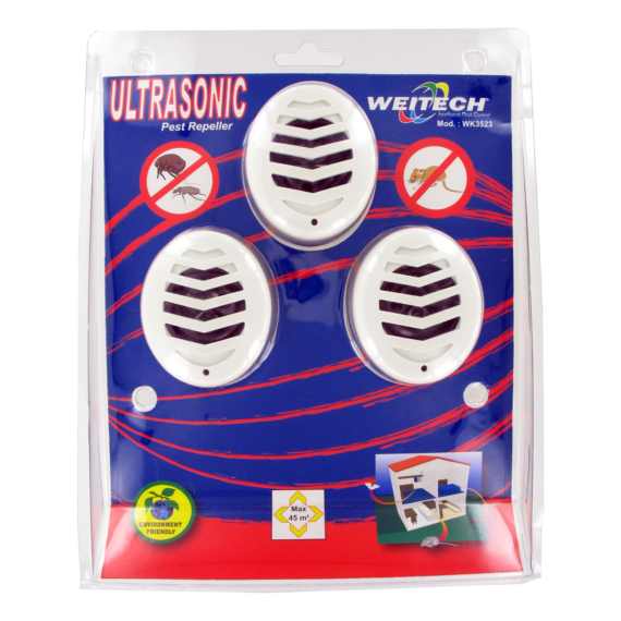 – várható eredmény 72 óra múlva.A Weitech kisállatelriasztó készülékek komplex hangot generálnak és bocsátanak ki nagyon magas hangfrekvencián (ultrahang), ill. magas intenzitáson. Ez az ultrahang emberi fül számára nem hallható, de a rágcsálók és a legtöbb bogár valamilyen módon hallja, ill. érzékszervével érzékeli ezt a magas frekvenciájú hangot.