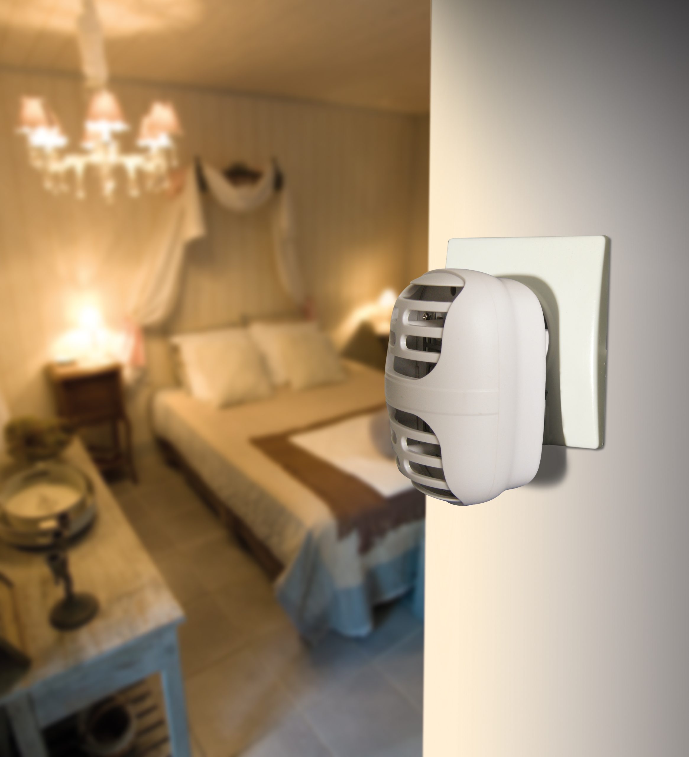 Ultrahangos szúnyogcsapda. Elektromos feszültségen működik, a kék UV-led egy enyhe elektromos rácsra vonzza a rovarokat, amely megsemmísiti azokat. H9,5x 7 x 7 cm.
